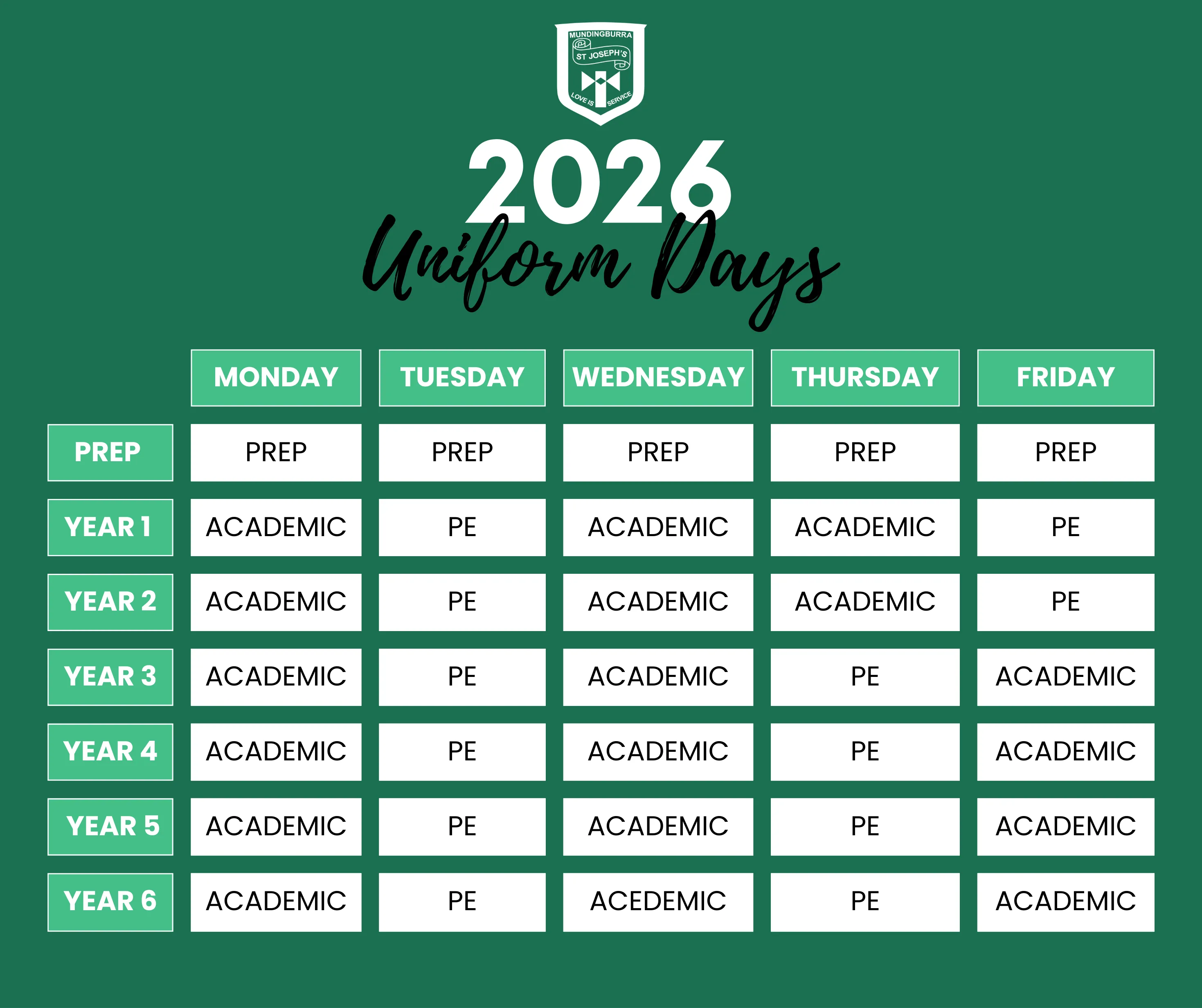 St Joseph's school uniform should be worn with pride on all occasions. It is the collective responsibility of all to ensure the Code of dress requirements apply to every student.